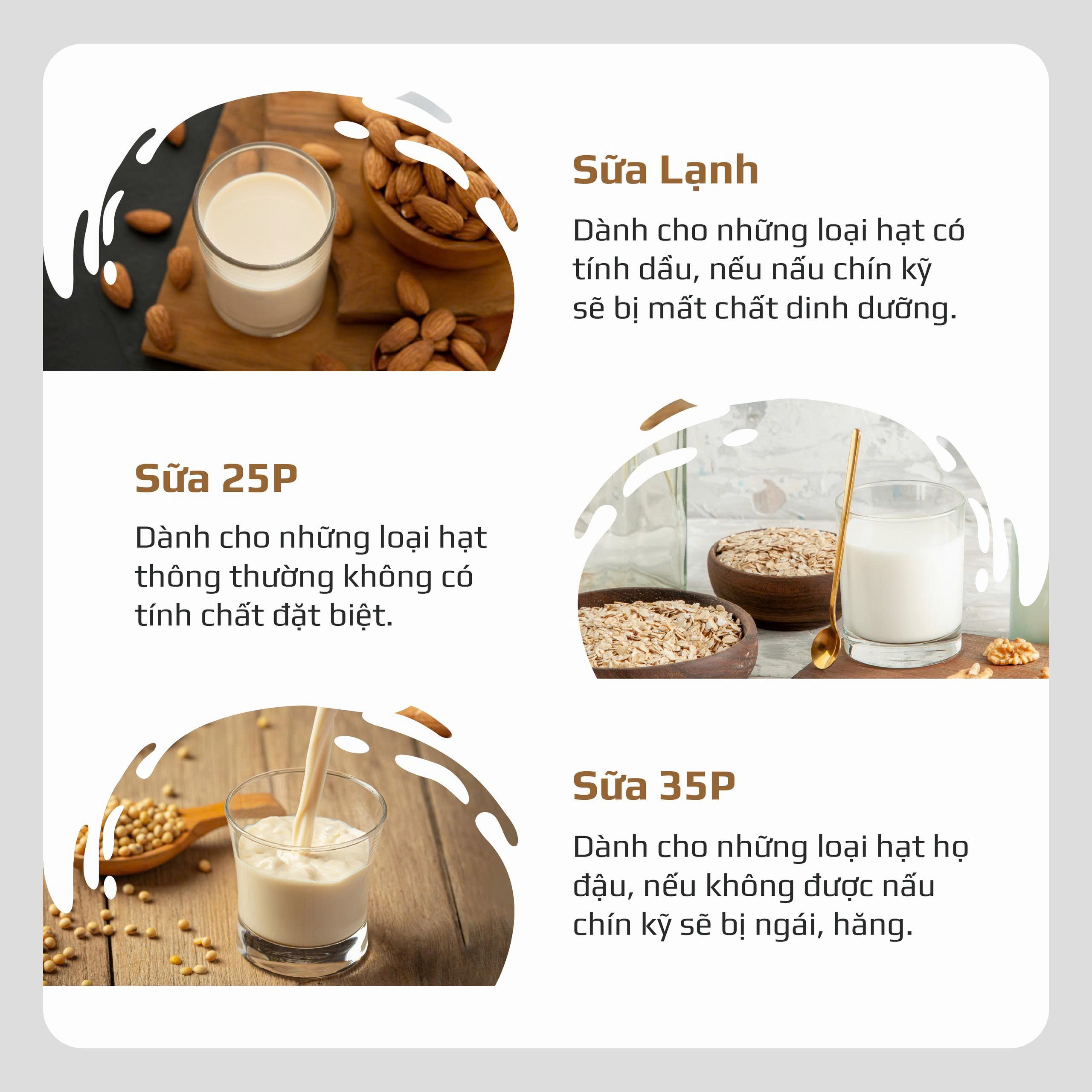 – Làm sữa hạt (nóng/lạnh), cháo dinh dưỡng, súp, sinh tố