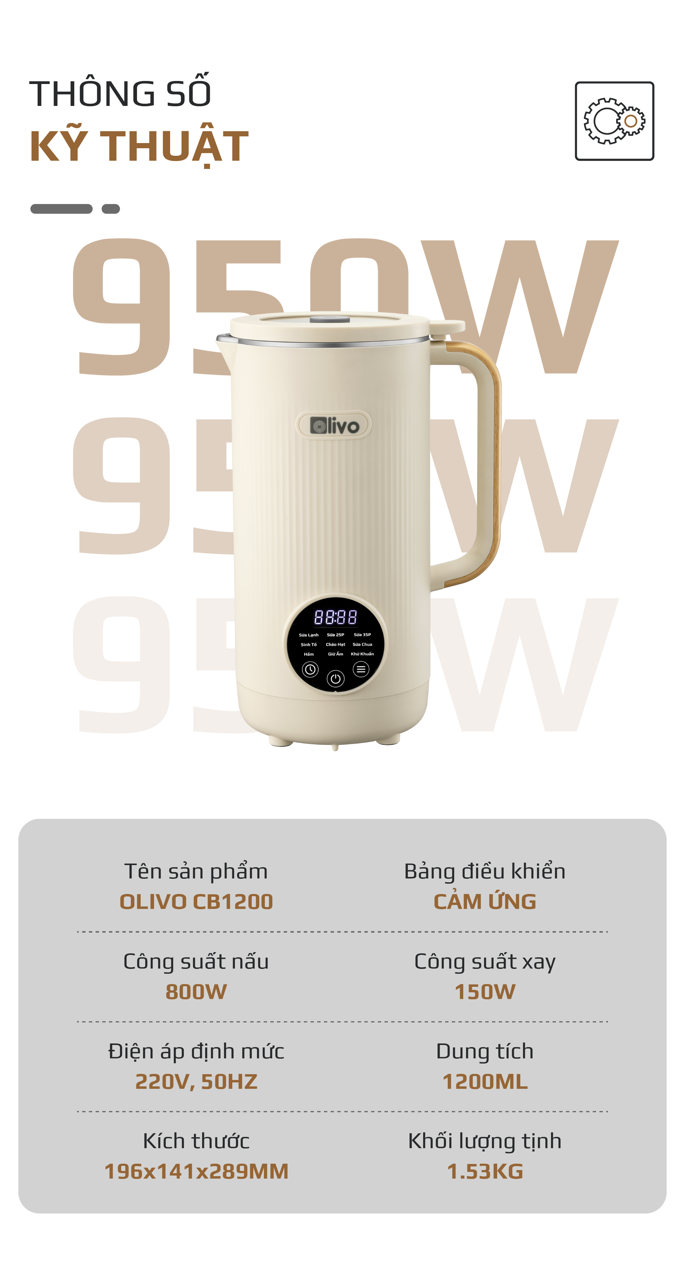 🌿 OLIVO CB1200 – Máy Làm Sữa Hạt Đa Năng 1.2L 🌿