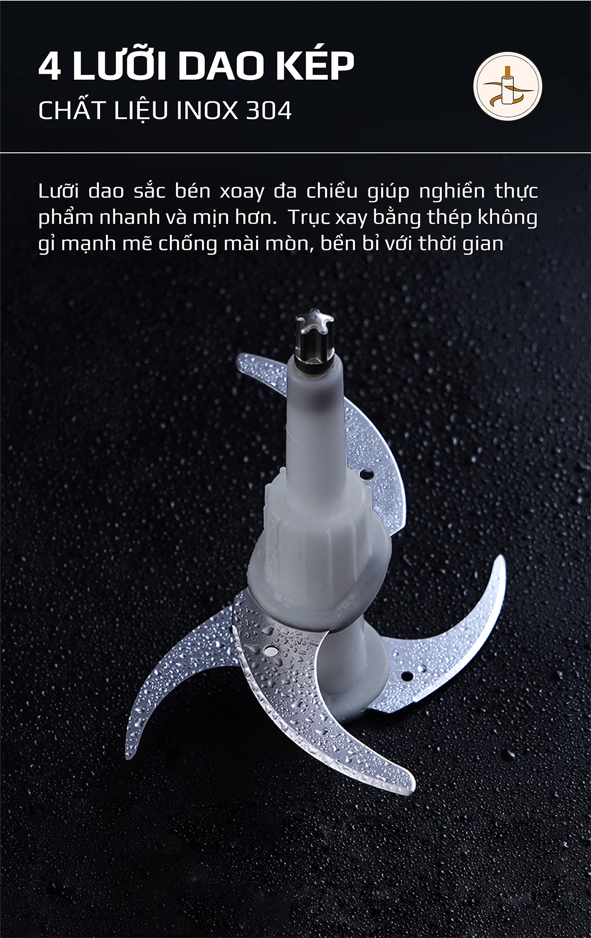 Thiết kế thông minh giúp tháo rời toàn bộ cối & dao dễ dàng, chỉ mất 1 phút để vệ sinh sạch sẽ.