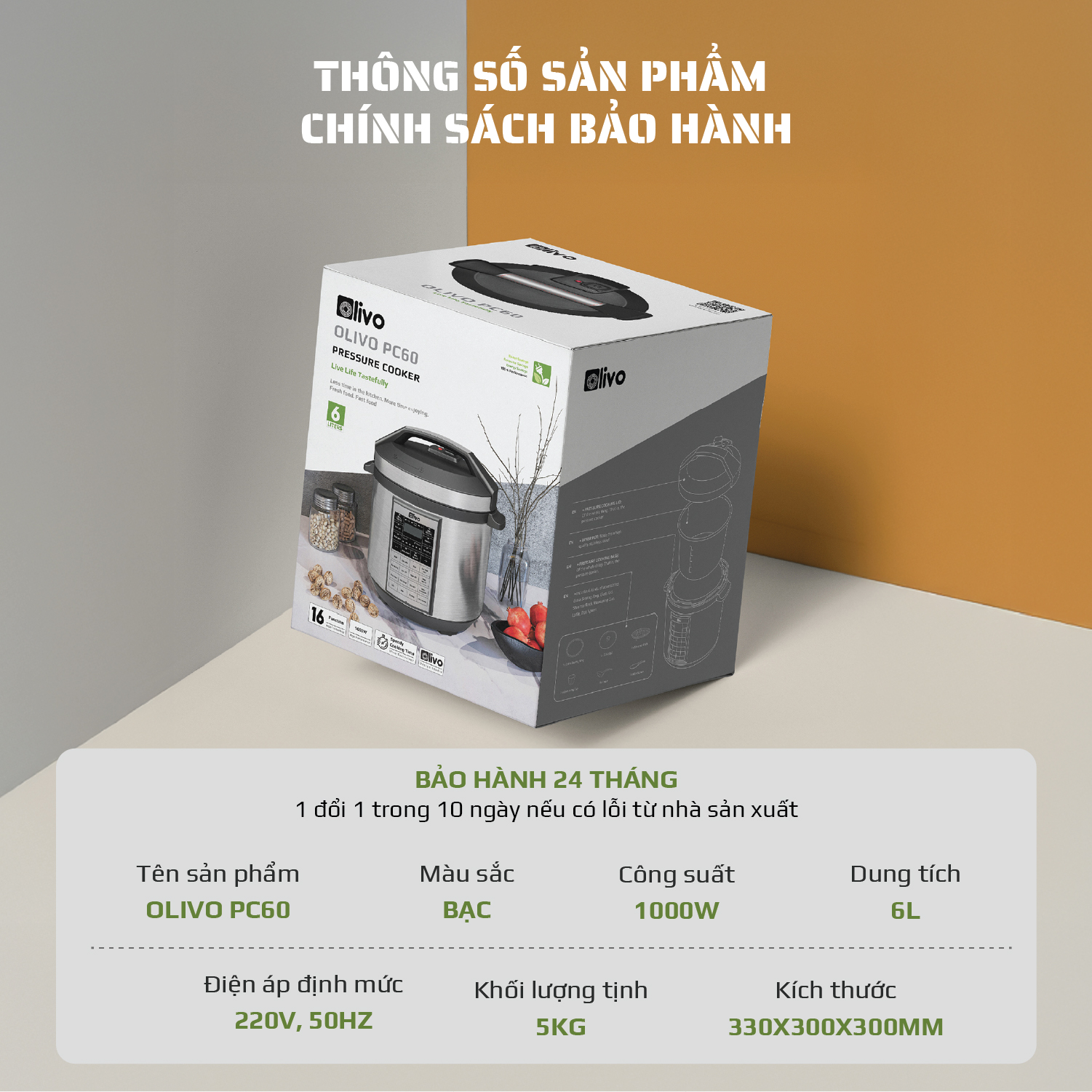 🔥NỒI ÁP SUẤT ĐIỆN ĐA NĂNG OLIVO PC60 – TIẾT KIỆM THỜI GIAN🔥