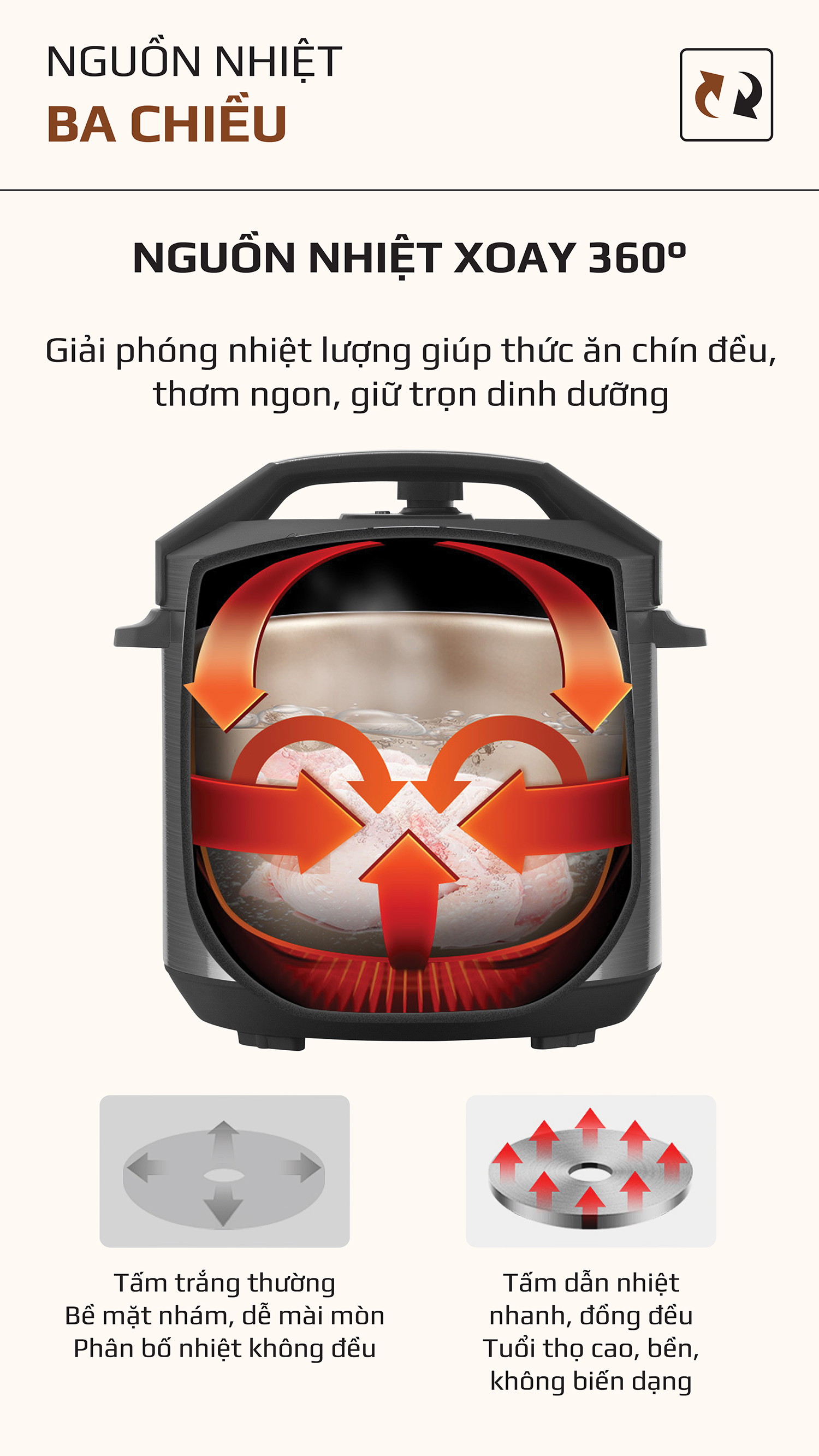 ✅ Hệ thống khóa nắp an toàn – Nắp chưa đúng, nồi sẽ báo lỗi & không hoạt động